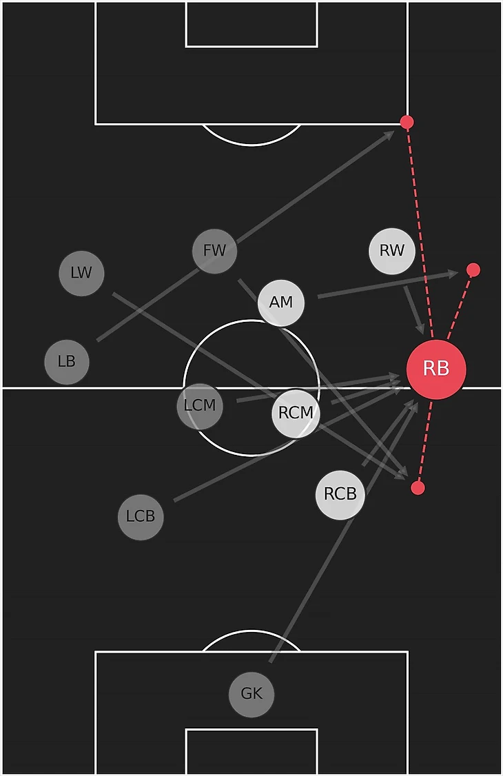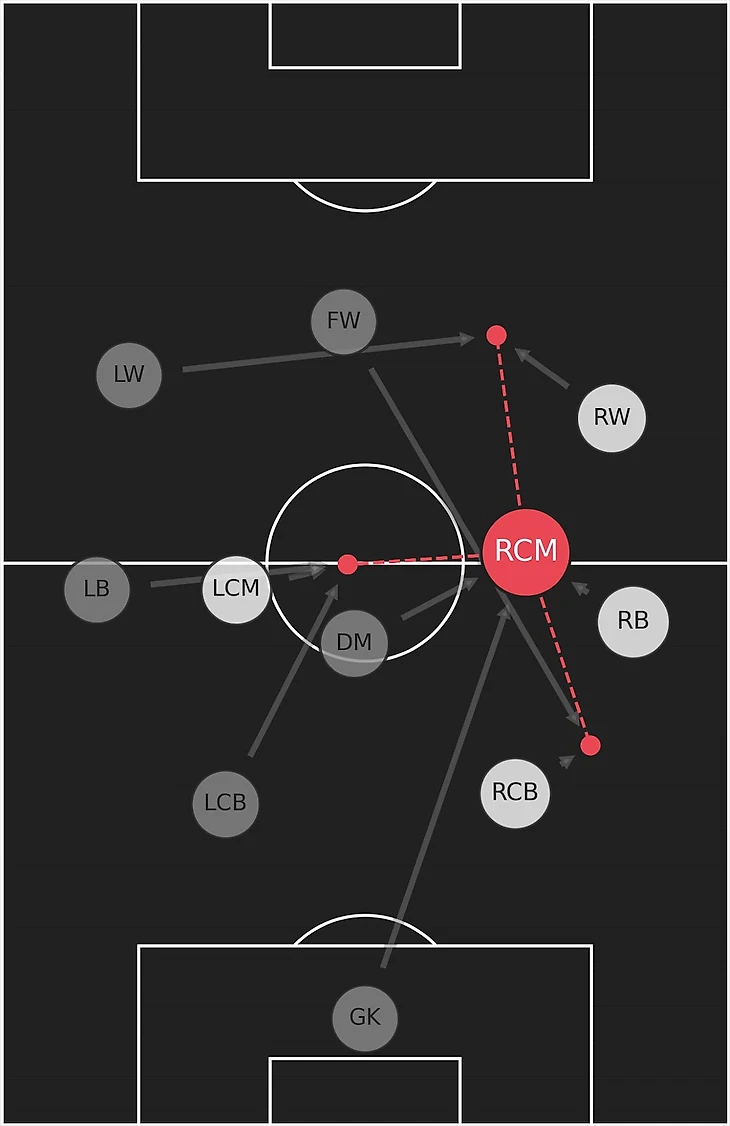 Также Менино отлично работает на сохранение мяча – в сложной ситуации скорее отыграет ближнему. Это сочетается с заточенностью на пас вперёд и на частые попытки выйти из-под прессинга быстрым обостряющим пасом.
