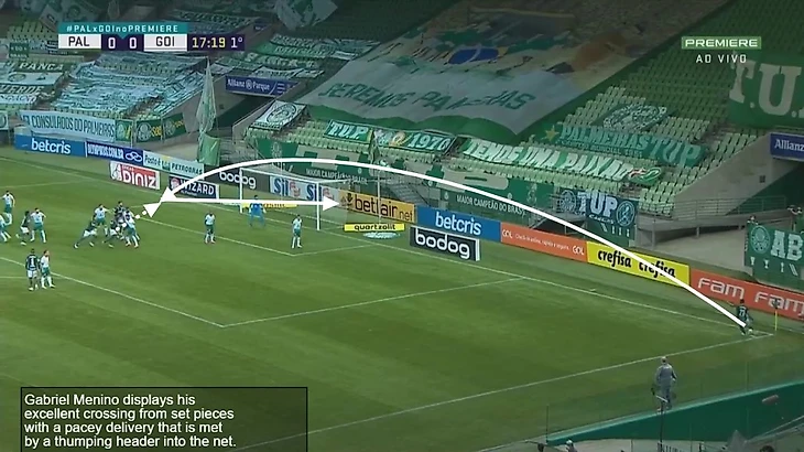 Также Менино обладает хорошим пасом верхом, с двух ног. Габриэл– один из основных подающих угловые и непрямые штрафные в команде.
