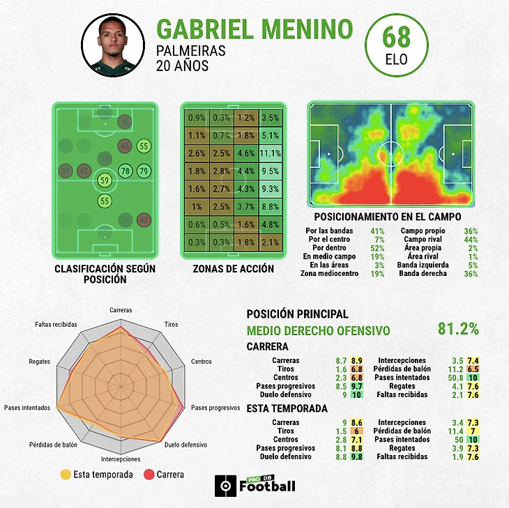 Запишите это имя. В Бразилии это уже сделали:  Габриэл Менино – новая молодая звезда, новая жемчужина бразильского футбола, но на этот раз речь пойдет не об атакующих полузащитниках. Нетипичный бразилец-основательный, рассудительный и при этом очень работоспособный и универсальный. Его кумиры-Каземиро, Фелипе Мело и Кака. Летом за Менино будет серьезная борьба топ-клубов. Газетные слухи уже отправляют его в Мадрид, Турин и Лондон, причем не в «Торино», «Райо Вальекано» или «Фулхэм».