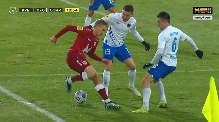 Илья Самошников на фланге красиво пробросил пяткой с разворотом, но защитник и выбил на угловой.