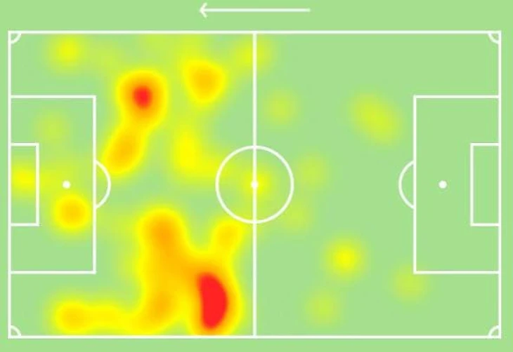 Конечно Промес очень прилично усилил "Спартак" весной, но вклад Соболева титанический. Во-первых, не могу вспомнить кто ещё из габаритных российских напов был настолько вовлечён и полезен в прессинге. Во-вторых, за 5 неполных матчей у мужчины уже 7+1 по гол+пас (плюс гол за сборную, когда Черчесов соизволил дать ему немного времени). То есть на одно результативное действие (гол или голевая) у него уходит 54 минуты по весенним матчам. В-третьих, такая результативность вдвойне ценна с учетом его широкой роли, которая очень далека от классического ЦФ. Ниже тепловая карта Соболева по матчу с Ростовом.