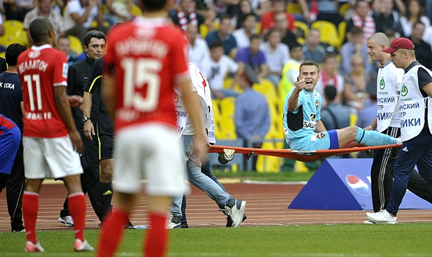 Не прошло и двух минут со стартового свистка арбитра в Подгорице, как камера выхватила кадр лежавшего на траве вратаря сборной России. В Игоря попал брошенный из-за ворот с фанатской трибуны файер. Вратарь упал на газон и был незамедлительно госпитализирован в местную больницу. После обследования врачи поставили диагноз ожога шеи и сотрясения мозга. Игра была остановлена на 35 минут, а зрителей предупредили, что в случае повторного инцидента с любой стороны матч будет завершён. На восстановление Акинфеева ушло около двух недель.