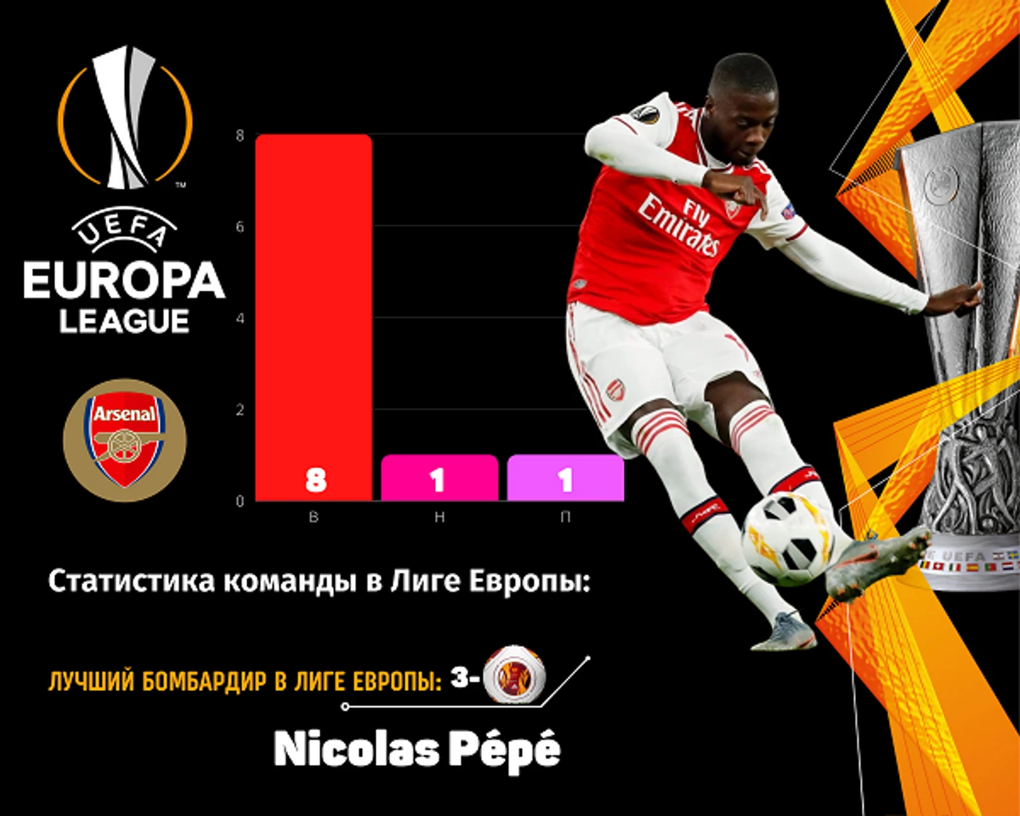 Лучший ассистент нынешнего сезона: в Лиге Европы – Николя Пепе, Букайо Сака, Эдди Уиллок ( по 3 передачи), в чемпионате страны – Виллиан (5 передач).