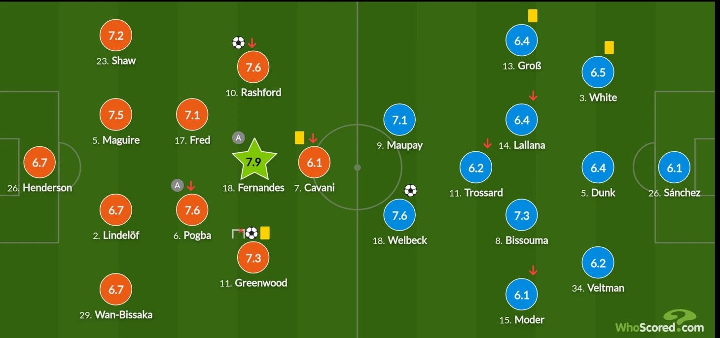 Перед матчем между МЮ и Брайтоном все было довольно предсказуемо. В последних 5 матчах между этими командами, победителем выходил Манчестер. Несмотря на то, что многие игроки Манчестера уезжали в сборные, сильно сказаться на них это было не должно. Гринвуд и Рэшфорд покинули сборную из-за травм. Кавани вообще не ездил в сборную, а Бруну и Линделёф не играли в последних матчах своих национальных команд, из-за дисквалификации и травмы соответственно. Так что по сути, большая часть игроков Манчестера должна была подходить к этой игре, относительно свежими.