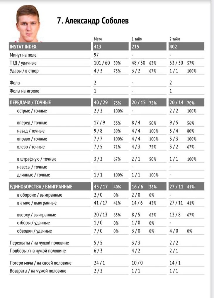Саша провел феноменальный матч. Он был «первой скрипкой» атаки, стараясь быть повсюду. Соболев цеплялся за верховые мячи, помогал в подыгрыше, развивал атаки через короткий пас, был на острие и бил по воротам сам, пытаясь создавать голевые моменты.