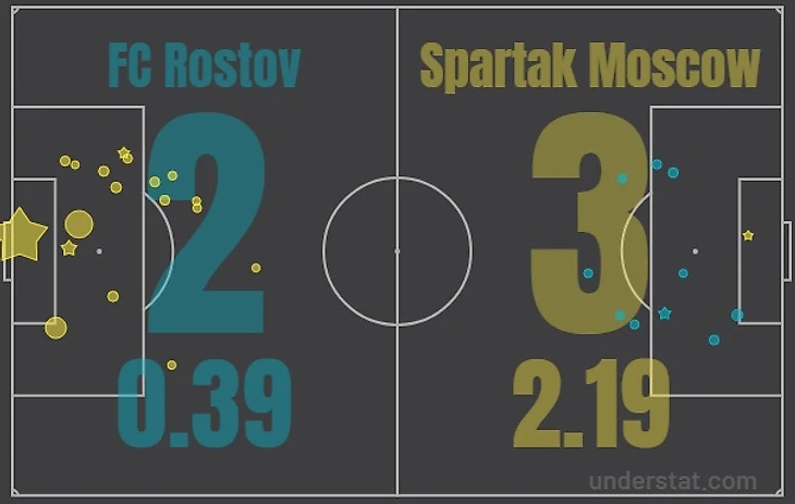 Гол Соболева во втором тайме получился после неплохой атаки «Спартака», закончившейся ударом Мозеса и угловым, который отлично подал Квинси Промес. Даже поведя 2:3 в счёте, «Спартак» имел куда больше моментов, нежели их оппоненты. Было упущено несколько отличных шансов, матч был близок скорее к счёту 4:2, нежели к 3:3. «Ростов» на концовку выпустил опытных бойцов – Байрамяна, Мамаева, Терентьева. Армянин дал новый импульс игре команды, пытаясь обострять игру, но «Спартак» оборонялся достаточно спокойно, нейтрализуя опасность у ворот Максименко даже без Жиго, получившего сотрясение мозга в безобидном моменте и заменённого на Гапонова. Штурм «Ростова» в конце не привёл ни к чему серьёзному. «Спартак» забрал долгожданную победу в Ростове-на-Дону и продолжает погоню за «Зенитом», оставляя интригу в чемпионате. xG лишь подтверждают закономерность результата, москвичи безоговорочно были ближе к победе.