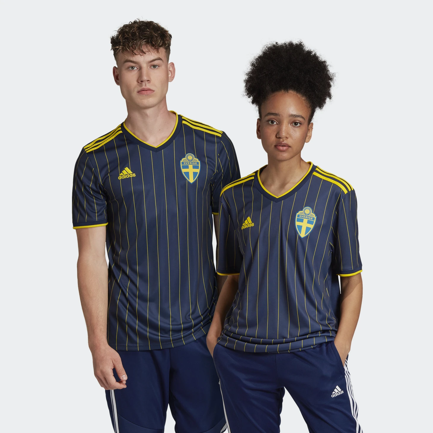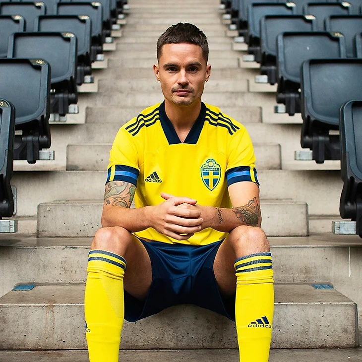 Ярко-жёлтый цвет в качестве основного, дополняющий насыщенный синий, изображение флага на манжетах и... всё. Так можно исчерпывающе описать домашний комплект сборной Швеции. Самый популярный шаблон турнира — Condivo 20 в очередной раз стал основой футболки.