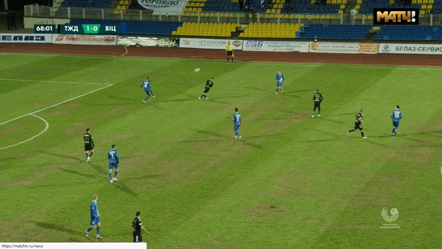 Однако нацеленность на ворота оппонента проявляется в том, что украинец выполняет отрезающую нескольких игроков «Торпедо» передачу по центру в линию атаки