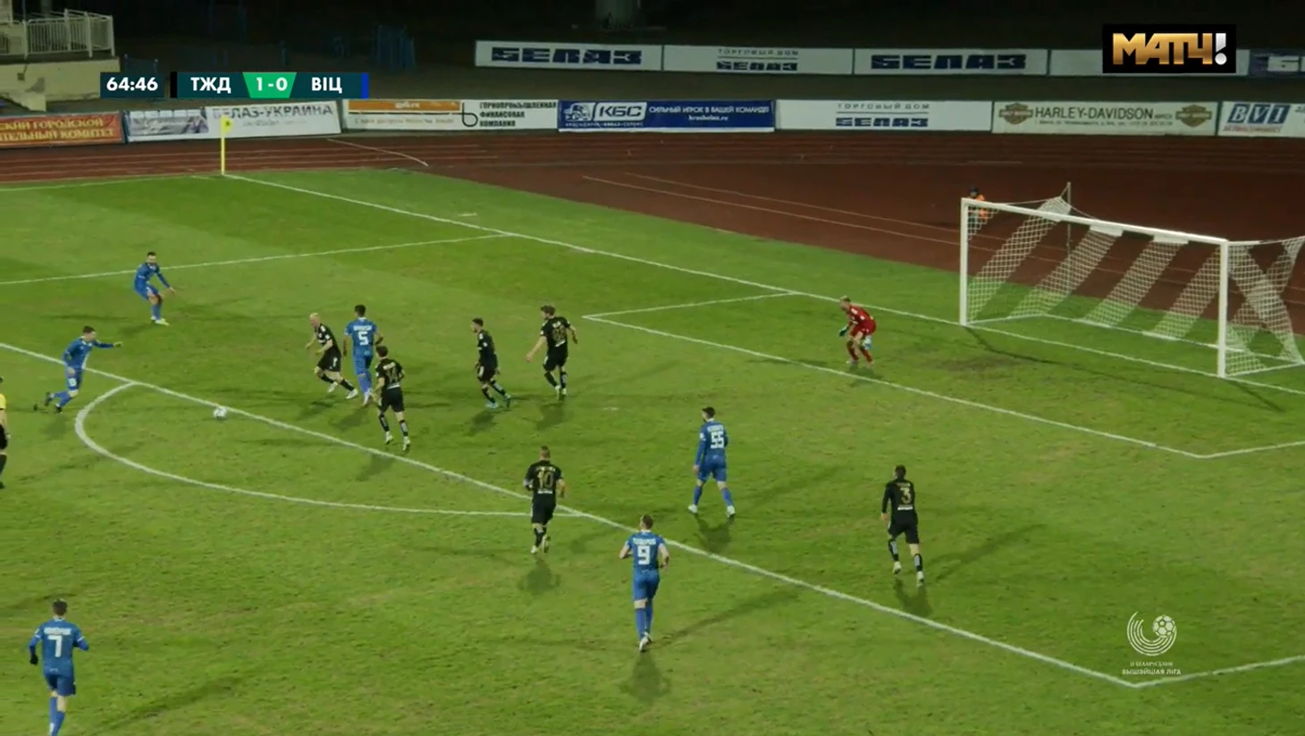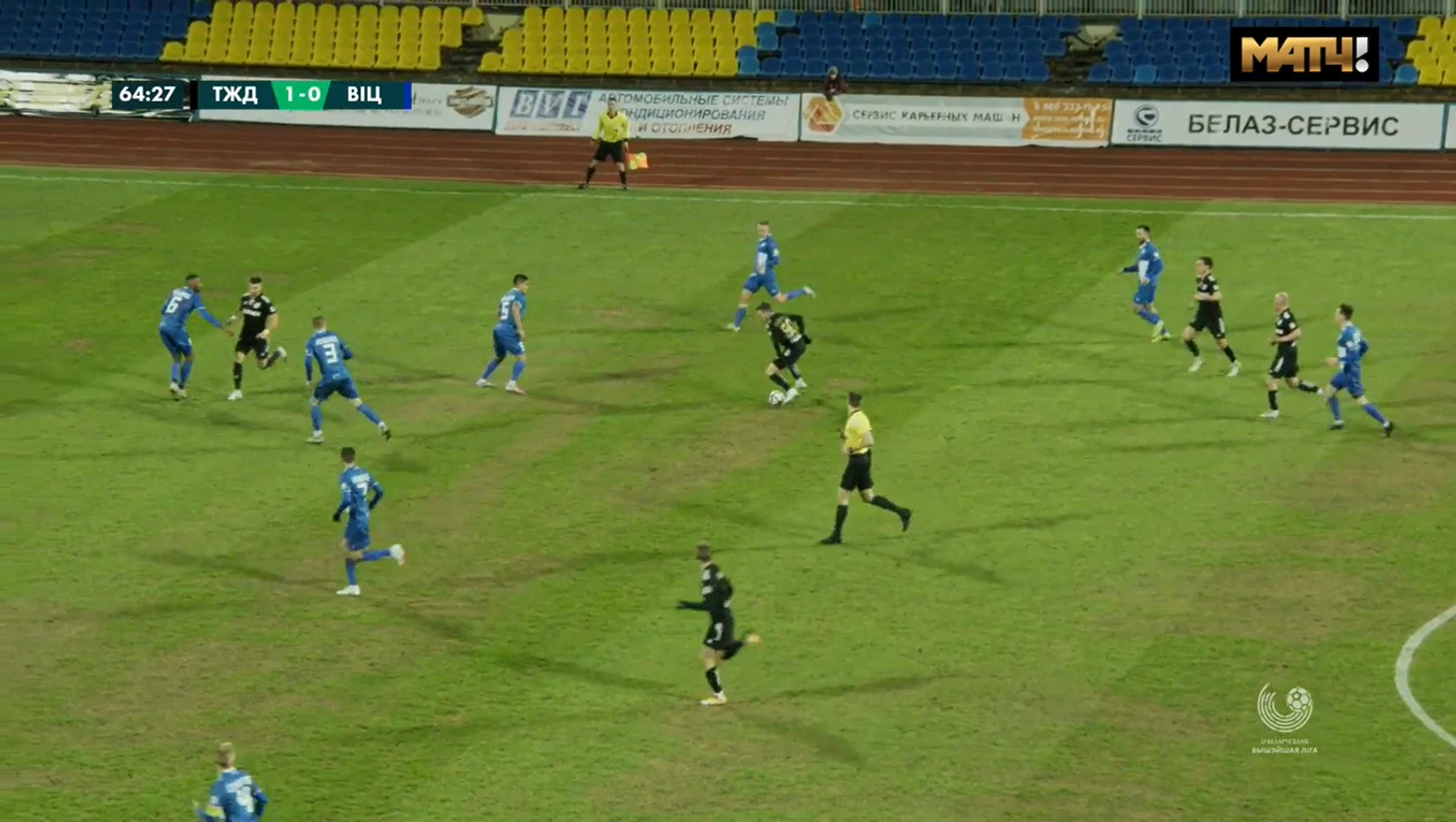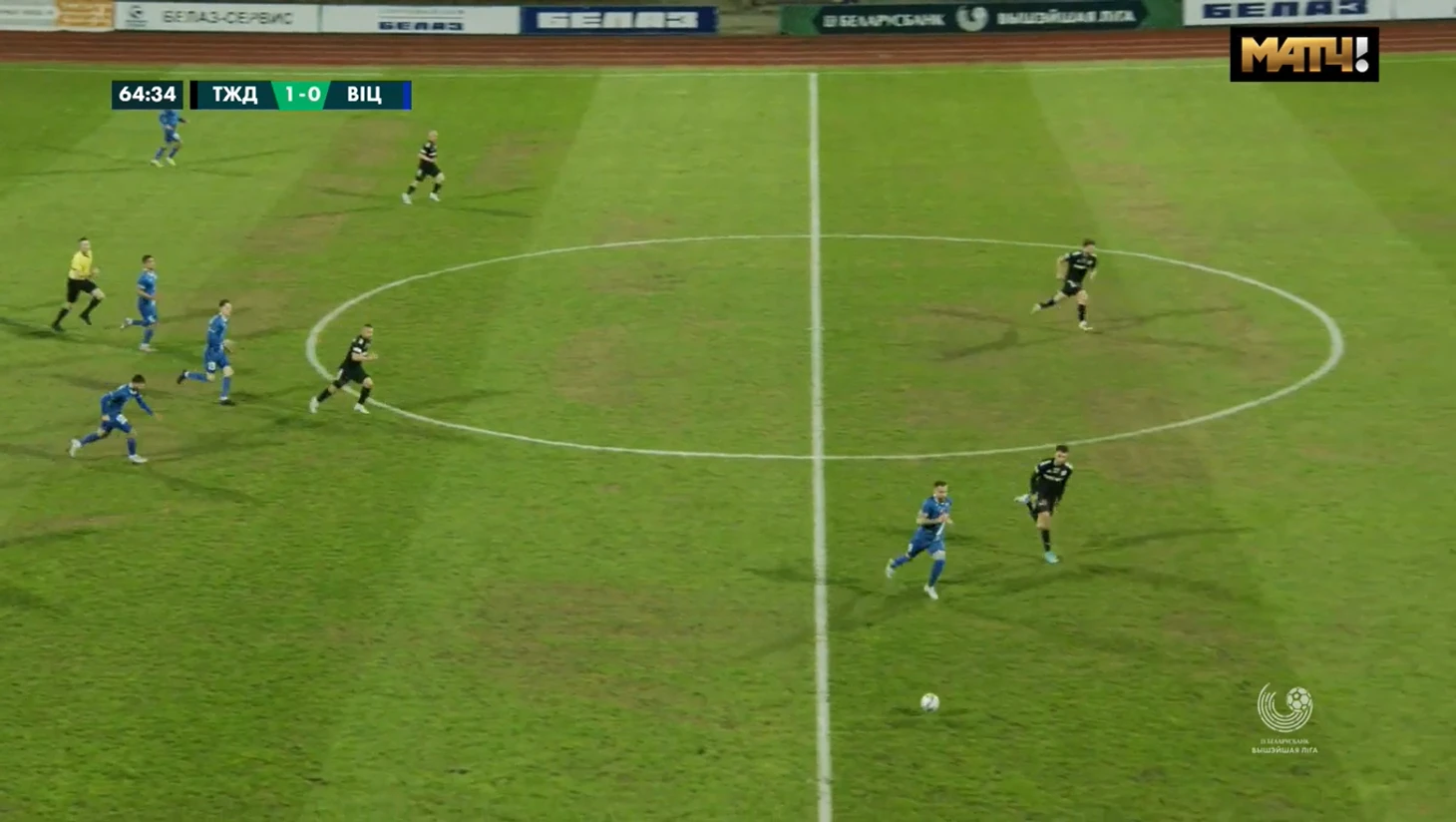 Лучше всего игра шла у гостей в первой трети второго тайма и в его середине, поэтому логично, что наиболее примечательные эпизоды уместились в этот временной отрезок. Жодинцы довольно быстро смекнули, что соперник в основном стремится к оперативному продвижению мяча через центральную ось и стали насыщать середину поля, но и витебляне мгновенно сориентировались, начав открываться в максимально широких позициях у бровки и выполнять длинные забросы из защитной линии во фланг: