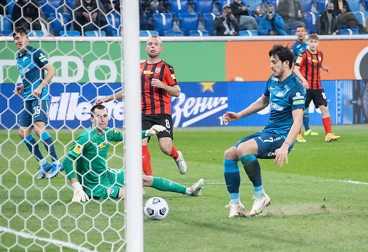 Уже в начале первого тайма, на 8-ой минуте, болельщики ликовали: Сердар Азмун реализовал первый же момент. Но радость команды Сергея Семака была недолгой. Судья Павел Шадыханов после подсказки коллег с VAR отправился смотреть повтор. Оказалось, что Деян Ловрен до паса Караваеву, ведя борьбу за мяч, ударил рукой по лицу Дмитрия Тихого ("Химки") , поэтому арбитр отменил гол в ворота соперника.