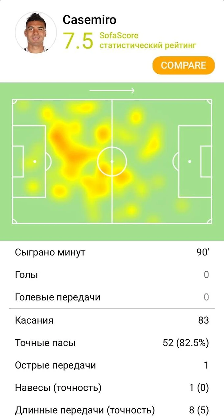 Считаю, что Каземиро был лучшим на поле за исключением Винисиуса, ведь тот забил больше всех, и автоматически является игроком матча. Каземиро отобрал мяч у соперника 8 раз, напомню, что весь Реал отобрал мяч 12 раз, получается 66.6% этих отборов совершил Бразилец, а это больше, чем весь Ливерпуль (7).