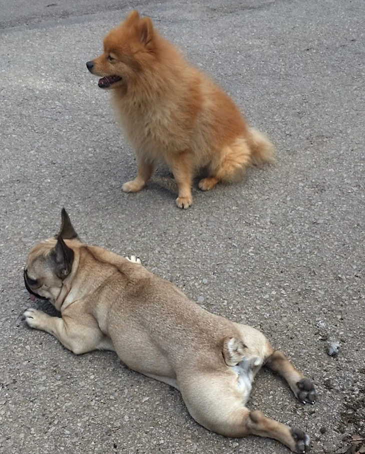 У девушки есть две собаки: Померанский шпиц и Французский бульдог!