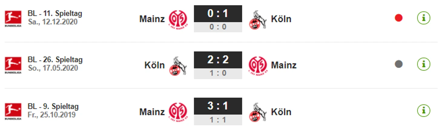 «Кельн» никогда не проигрывал в домашних матчах «Майнцу» (четыре победы, пять ничьих)