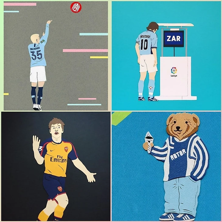 В интернете много творческих людей, есть автор, который рисует футболистов на бумаге, а затем вырезает их.