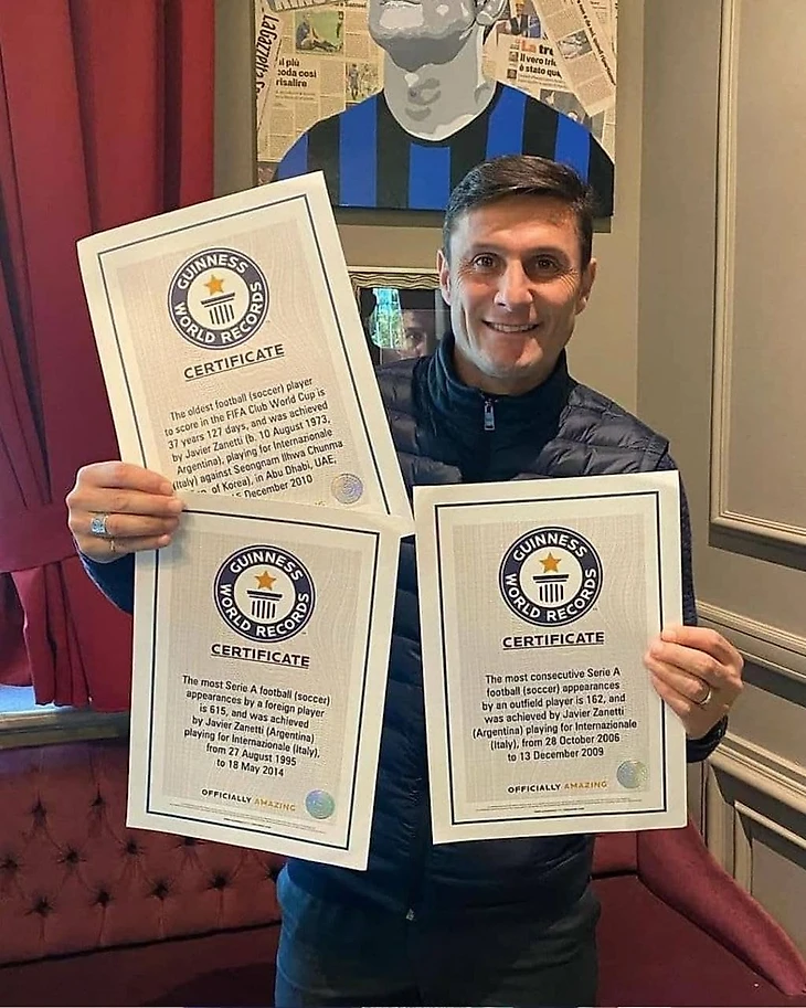 Легенда "нерадзурри" вписала свое имя в книгу рекордов трижды. Хавьер Дзаннети установил следующие достижения выступая за "Интер":