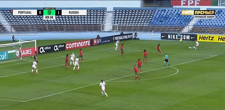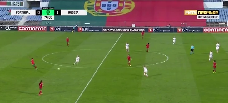 В первой половине Португалия показала себя довольно организованной командой. По крайней мере, по части обороны. За 39 минут сборная России нанесла только один удар по чужим воротам (навес Алсу Абдуллиной нашел в штрафной Надю Смирнову). В остальном - как в пустыне. И не последнюю роль здесь играет опыт и сыгранность португалок. У вратаря Патрисии Мораиш (28 лет) - почти 60 матчей за сборную. У двух центральных защитниц, Кароле Кошты и Сильвии Ребелу (30 лет и 31 год), а также правой защитницы Аны Боргеш (ей 30) - свыше 100 игр за сборную. Мораиш и Боргеш вместе играют за "Спортинг", центральные защитницы Кошта и Ребелу - за лиссабонскую "Бенфику". ВСЯ эта четверка(!) была основной и четыре года назад на ЕВРО-2017.