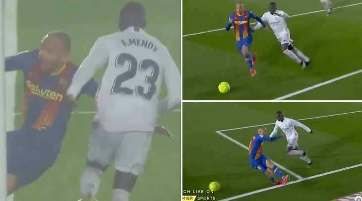 Но концовка, как это часто бывает в таких матчах, была огненной. Сначала Каземиро из героя превратился в антигероя, получив две абсолютно заслуженные жёлтые за две минуты. Что необычно, он даже не спорил по поводу удаления. Затем произошёл тот самый эпизод с Брэйтуэтом. Альба опасно выходил к воротам, протолкнул мяч мимо Куртуа, но снаряд по лужам медленно покатился не в створ, а за лицевую линию, где его и подхватил датский нападающий. Не успевавший за ним Менди дотронулся до его рук, чем спровоцировал картинное падение форварда и кучу споров во время и после матча. Касание правда было. Но оно было совсем крохотным, а Брэйтуэйт подлетел так, будто подорвался на противопехотной мине. Давайте на чистоту: как бы скользко не было на этом поле, такое касание физически не может стать причиной такого неестественного падения. Да, формальный повод для пенальти есть. Но слишком уж явно Брэйтуэйт приукрашивал своё падение. И тут перестарался.