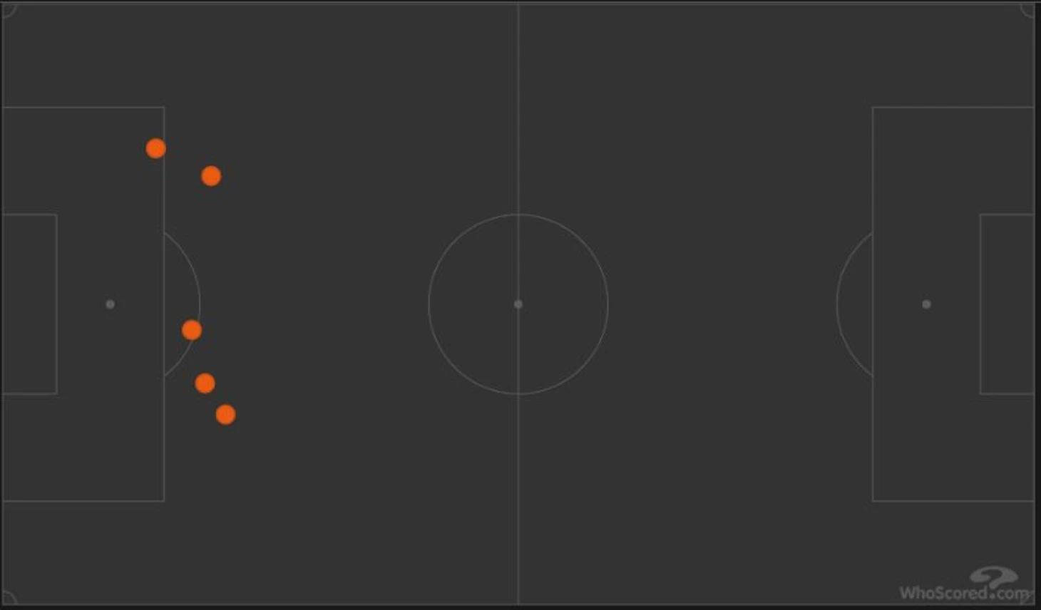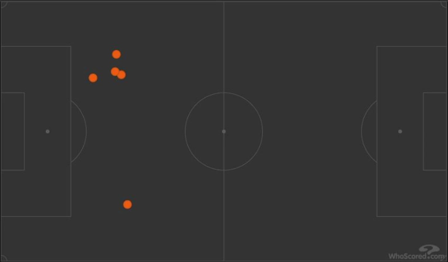 Посмотрите на карту перехватов и отборов Каземиро: все сделаны либо в зоне Лео, либо в зонах, через которые аргентинец отдаёт передачи на левый фланг. В общей сложности за первый тайм бразильский опорник совершил десять успешных оборонительных действий.