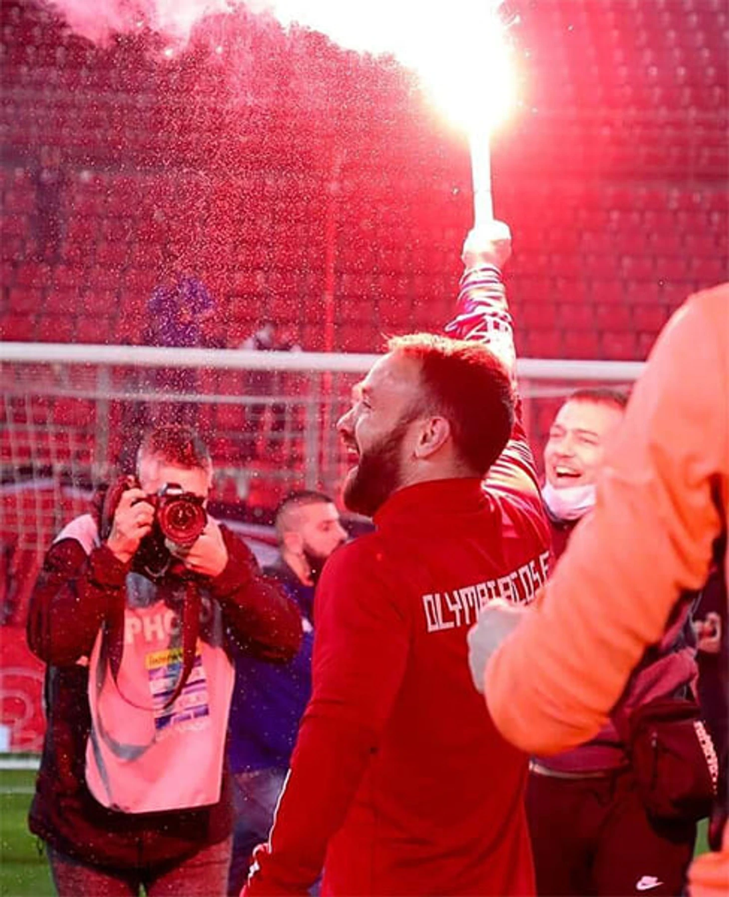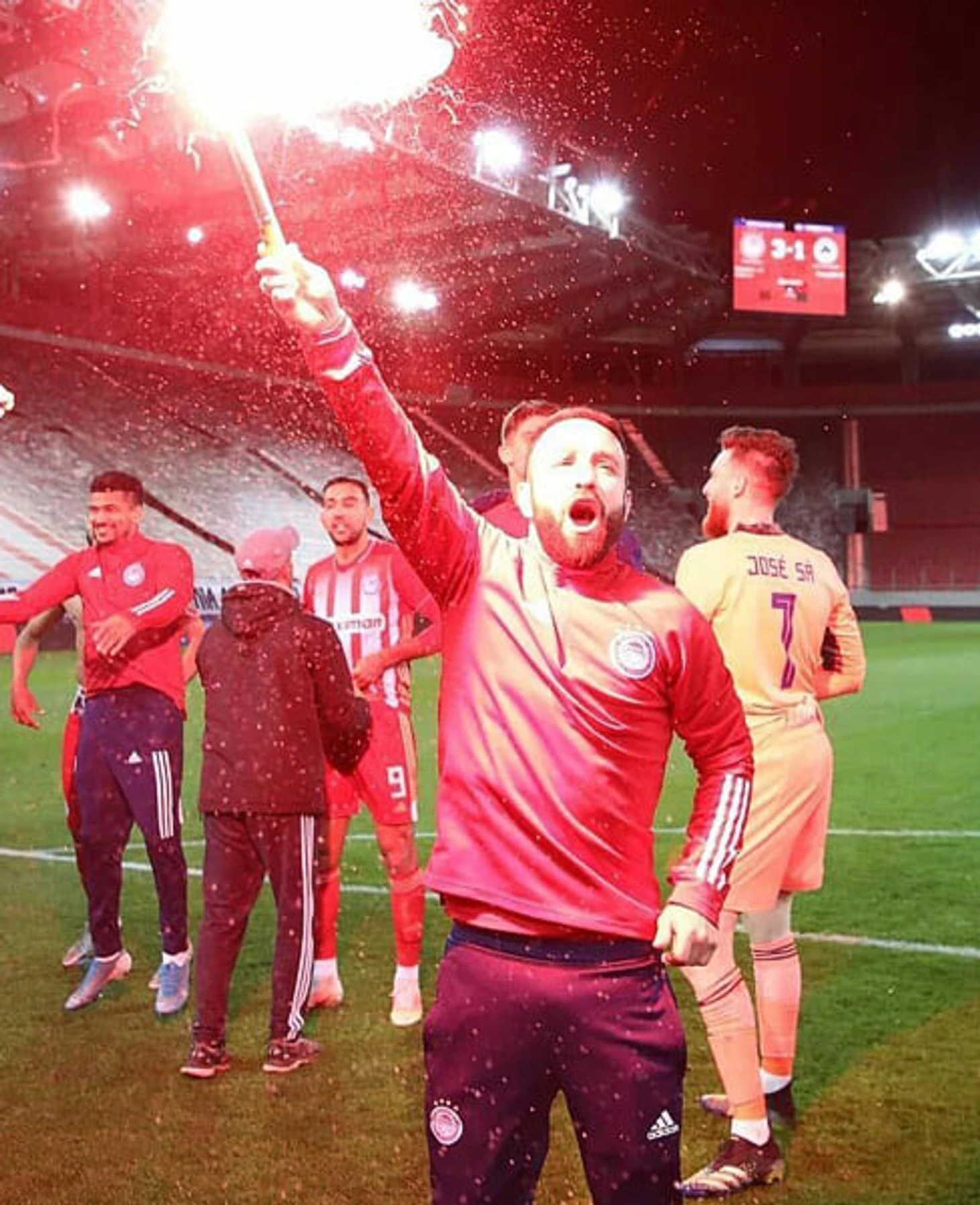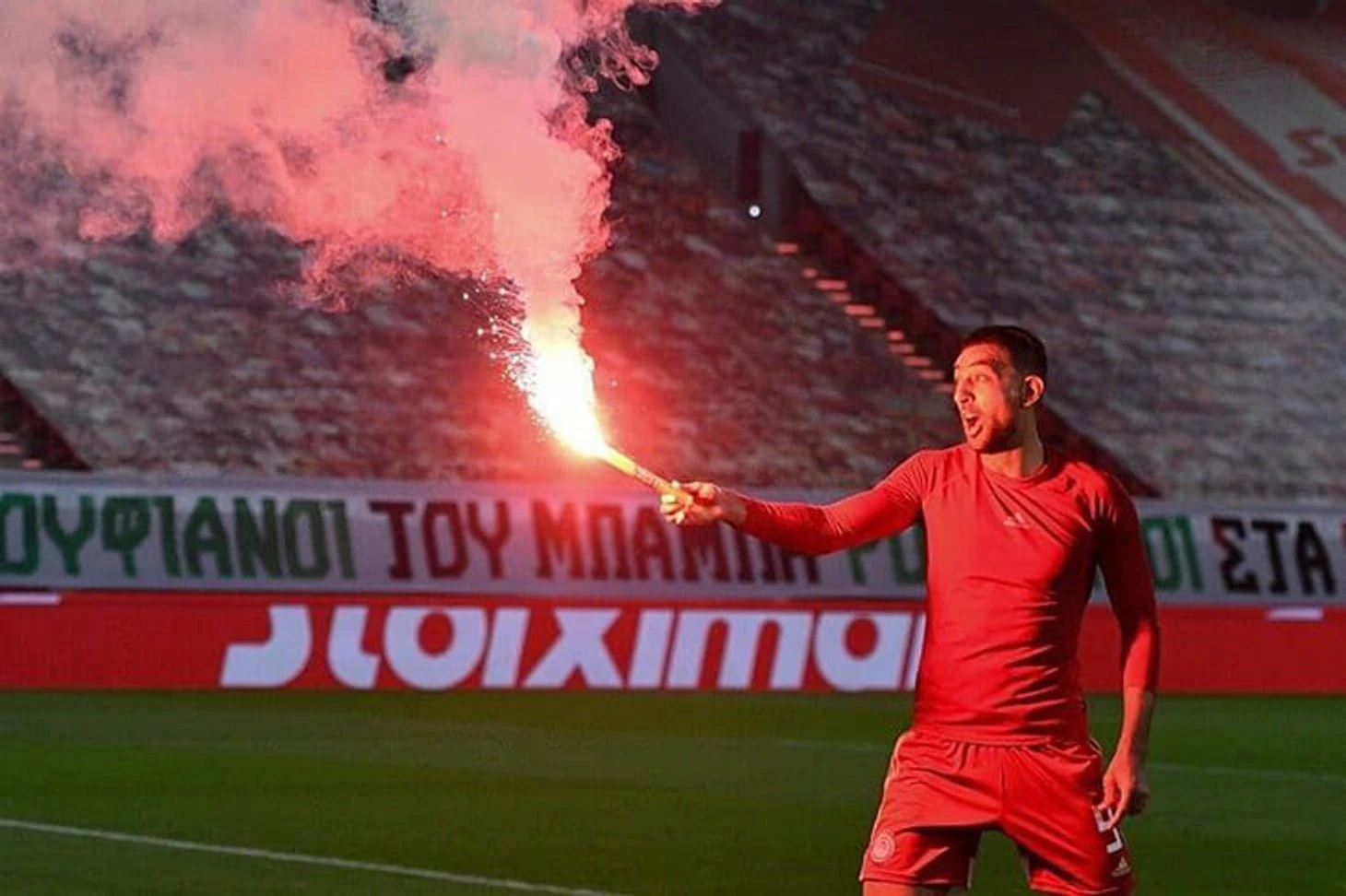 Игроки «Олимпиакоса» отметили 46-й титул с огнем – устроили пирошоу вместо фанатов