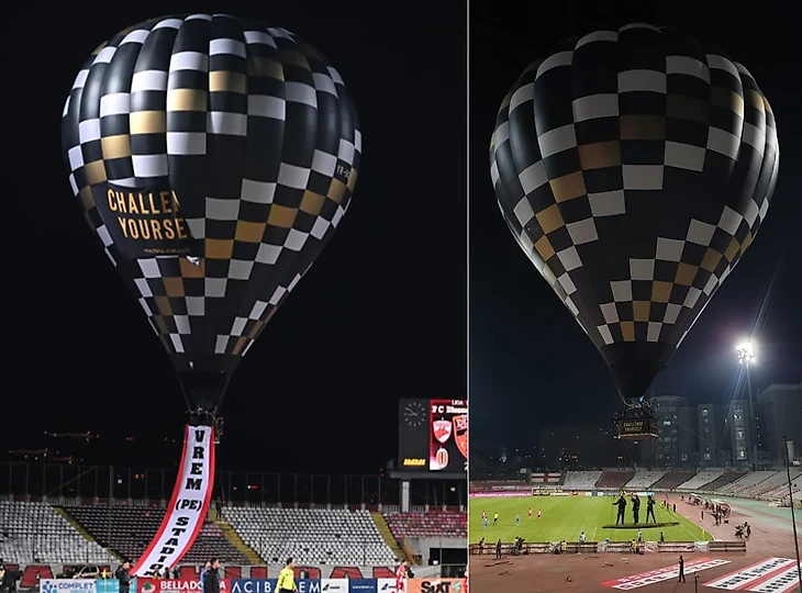 Воздушный шар был запущен прямо с фанатской трибуны имени Кэтэлина Хылдына – он был многообещающим футболистом в конце 90-х, в 18 лет дебютировал за "Динамо", а позднее стал вызываться и в сборную Румынии. Опорник успел провести за красно-белых 138 матчей, но 5 октября 2000 года во время товарищеского матча против "Шантьерул Навол" Кэтэлин потерял сознание и упал на газон. Причиной смерти стала остановка сердца. В доковидное время на северной трибуне его имени располагались все основные фанатские группировки "Динамо" ("Nouva Guardia", "Panzer'04", "Supras", "Tifosi Ultra" и прочие), однако из-за внутреннего противостояния в движе и конфликтов против руководства клуба часть группировок ("Brigate", "Boys", "Sector 32", "Underground" и другие) заняла противоположную южную трибуну.