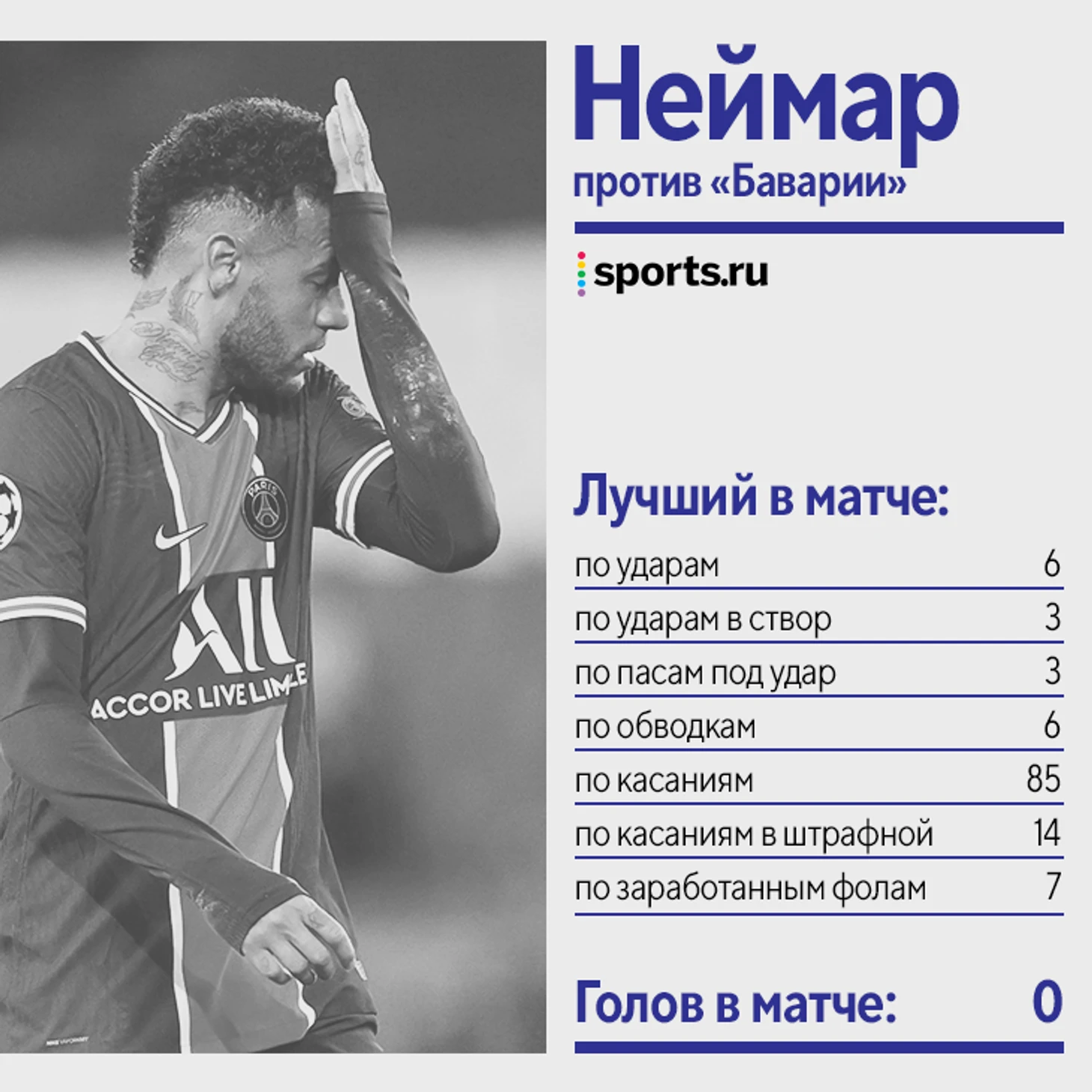«ПСЖ» проиграл «Баварии» 0:1, но французы проходят в полуфинал ЛЧ из-за гостевой победы 3:2 – тогда Неймар создал сразу два гола. В ответном матче бразилец опять раскидывал соперников на дриблинге и угрожал из позиций, откуда спокойно кладет.