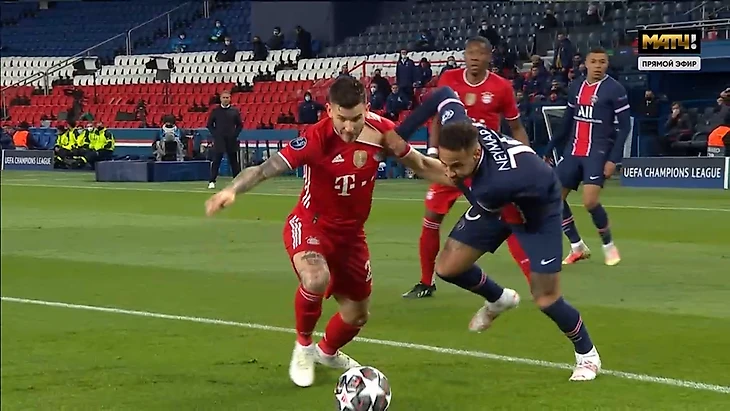 • Бразилец не остановился. На 39-й – очередная контратака «ПСЖ», очередное грамотное открывание Мбаппе: Килиан снова делится, выкатывая Неймару под удар. Защита «Баварии» опять теряет Нея, который в этот раз даже подработал мяч.