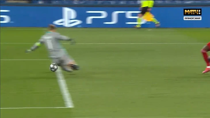 Но снова штанга! На повторе заметно, что после фигуры Нойера мяч изменил вращение. Кажется, здесь Мануэль снова оставил «Баварию» в игре.