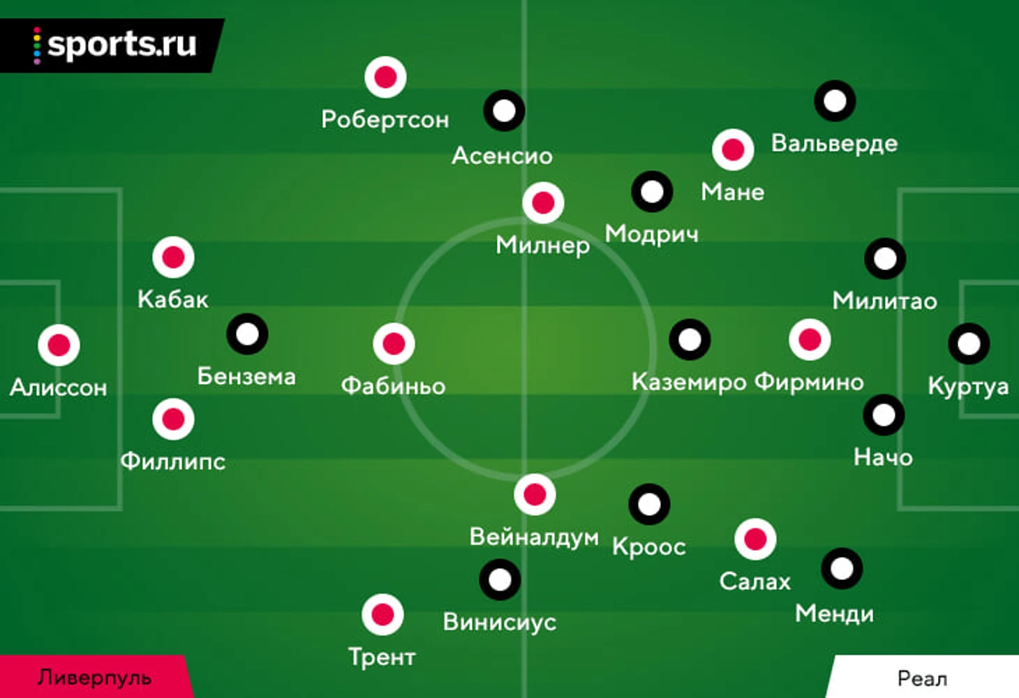 1. Юрген Клопп внес два изменения в состав относительно первого матча. Наби Кейта и Диогу Жота оказались на скамейке. Вместо них появились Джеймс Милнер и Роберто Фирмино. Изменения напрашивались, исходя из содержания первого матча: именно Кейта и Жота сильнее всех выпадали из прессинга, за что команду Клоппа грамотно наказал «Мадрид» (особенно Тони Кроос).