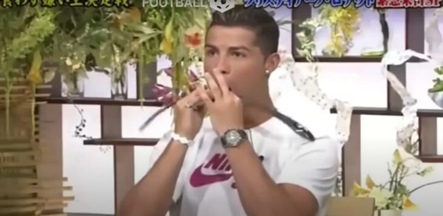 Летом 2014-го Криштиану прилетел в Японию как посол производителя тренажеров MTG. Роналду пришел на местное телевидение рекламировать новинки компании.