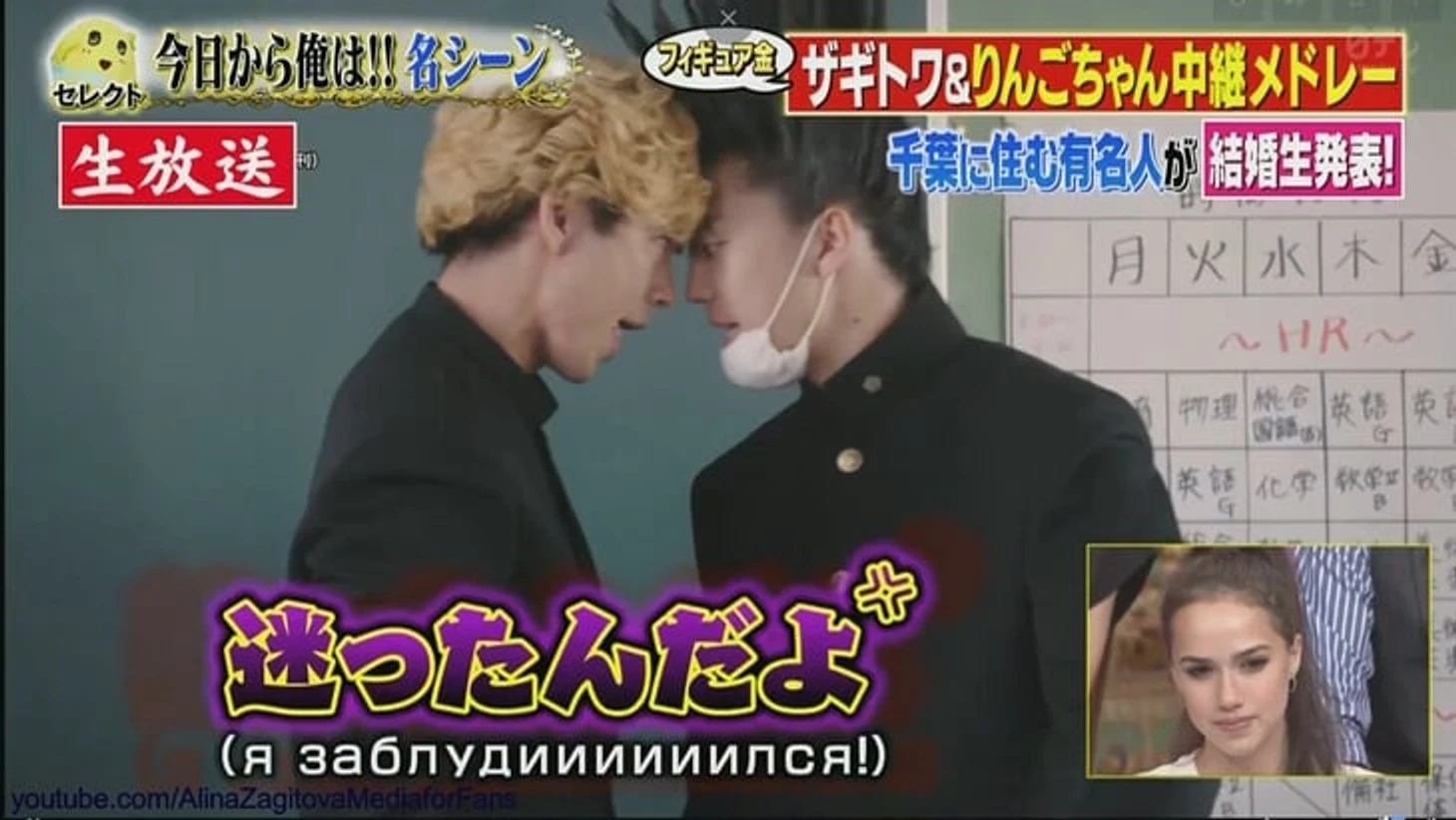 Градус кринжа приближается к эфирам Губерниева. На экран выводят фото Алины с фигуристом Юдзуру Ханю – намек на их роман.