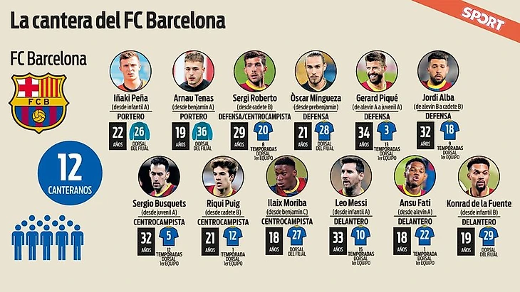 Финальный матч должен стать днем долгожданного возвращения Жерара Пике после травмы. Жерар, как и Альба, является примером того, что можно успешно вернуться в «Барсу» даже после ухода из академии. Серджи Роберто и Мингеса (представляющий «Барсу» аж с «Пребенжаминов», самой первой категории академии) и даже Илайш Мориба могут выйти в стартовом составе, в то время как на скамейке запасных будут Рики Пуч, Иньяки Пенья, Арнау Тенас и Конрад, если уроженец Майами попадет в заявку. Из числа кантеранос сыграть не сможет из-за травмы только Ансу Фати. Его восхождение было умопомрачительным.