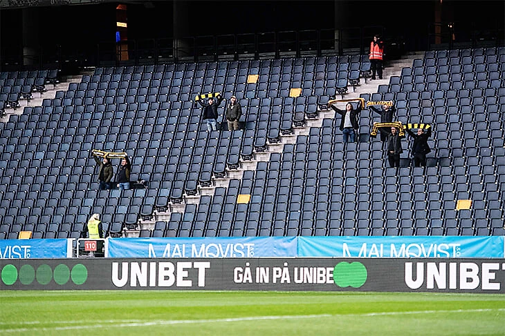 Дело в том, что возвращение зрителей на трибуны происходит постепенно: согласно правилу, утвержденному шведским правительством, спортивные мероприятия могут посещать только восемь (!) человек. Проводится специальная лотерея, где счастливчики получают шанс увидеть игру любимой команды.