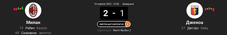 Дженоа имел все шансы свести встречу вничью, но дважды защитники "Милана" были против: Симон Кьер и Фикайо Томори с разницей в несколько секунд вынесли мяч с линии ворот Джанлуиджи Доннаруммы.