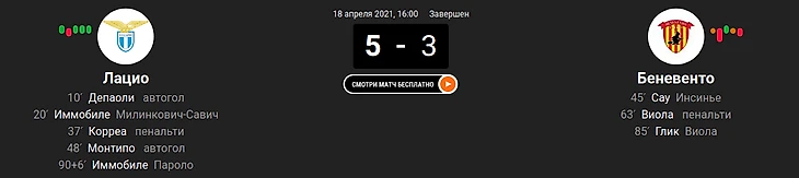 У игры "Лацио" и "Беневенто" не было, как любят говорить, вывески. Турнирной интриги не было тем более: в таблице между командами 28 очков, целая пропасть. Эту встречу можно было бы озаглавить "Братским дерби", памятуя о том, что командами руководят братья Индзаги, Симоне и Филиппо и их встреча по разные стороны баррикад могла стать украшение матча. Однако же и этому не суждено было случиться: тренер "Лацио", Симоне Индзаги сдал положительные тест на COVID-19 незадолго до игры и, как итог, отсутствовал на бровке. Филиппо отметил, что "скучал по нему", но отметил, что "сейчас здоровье важнее всего".