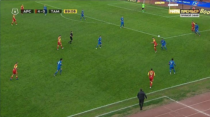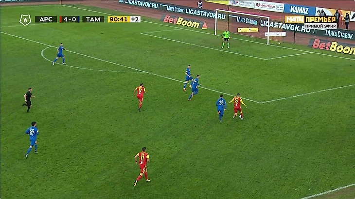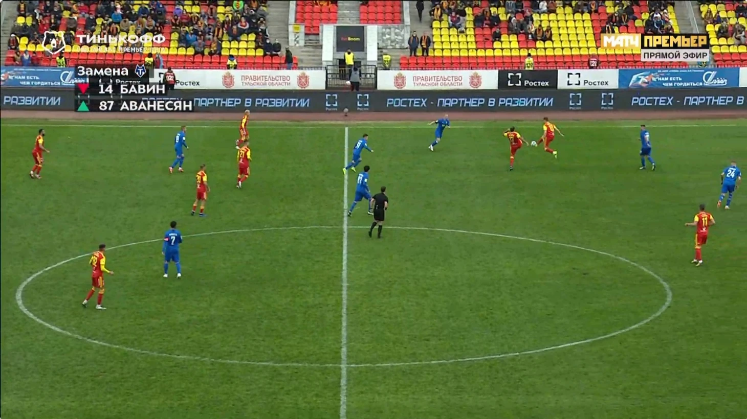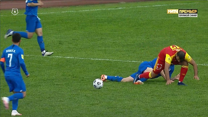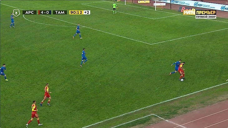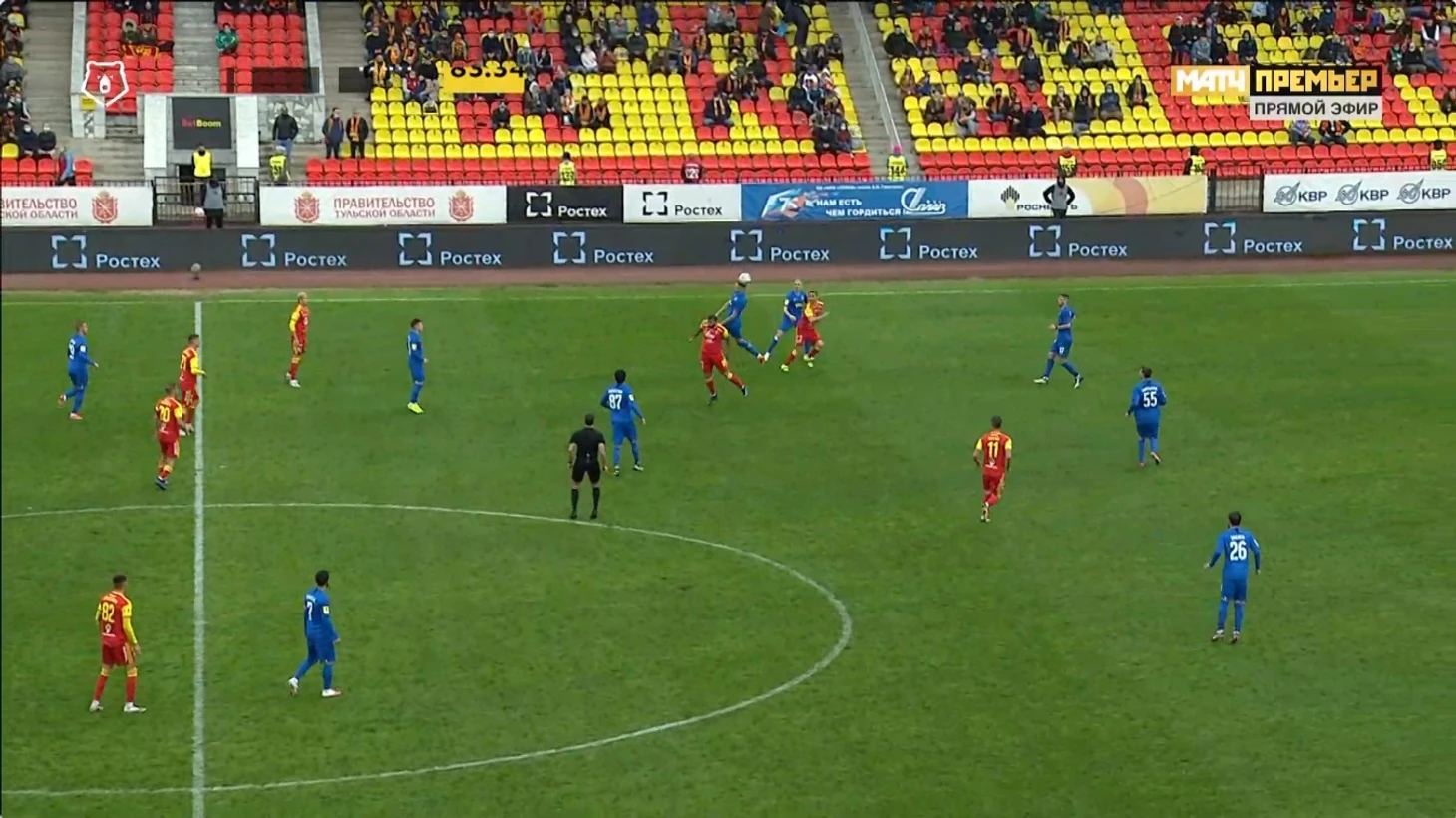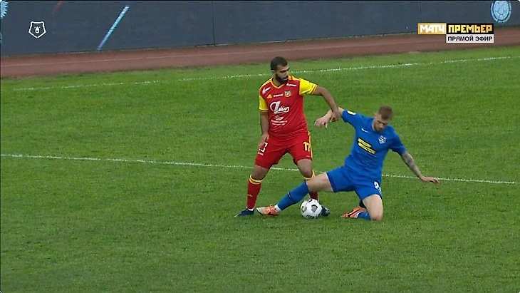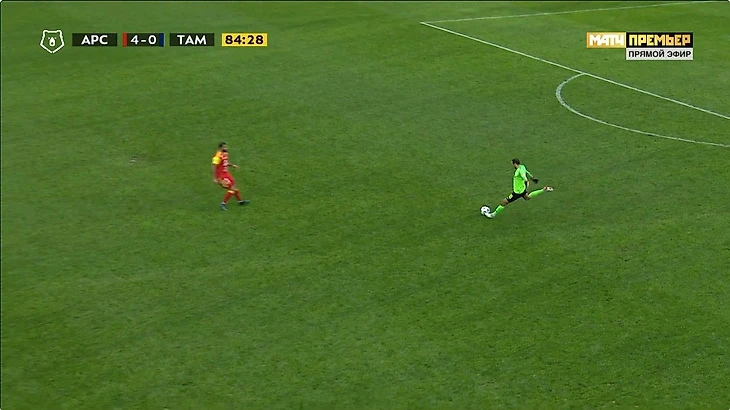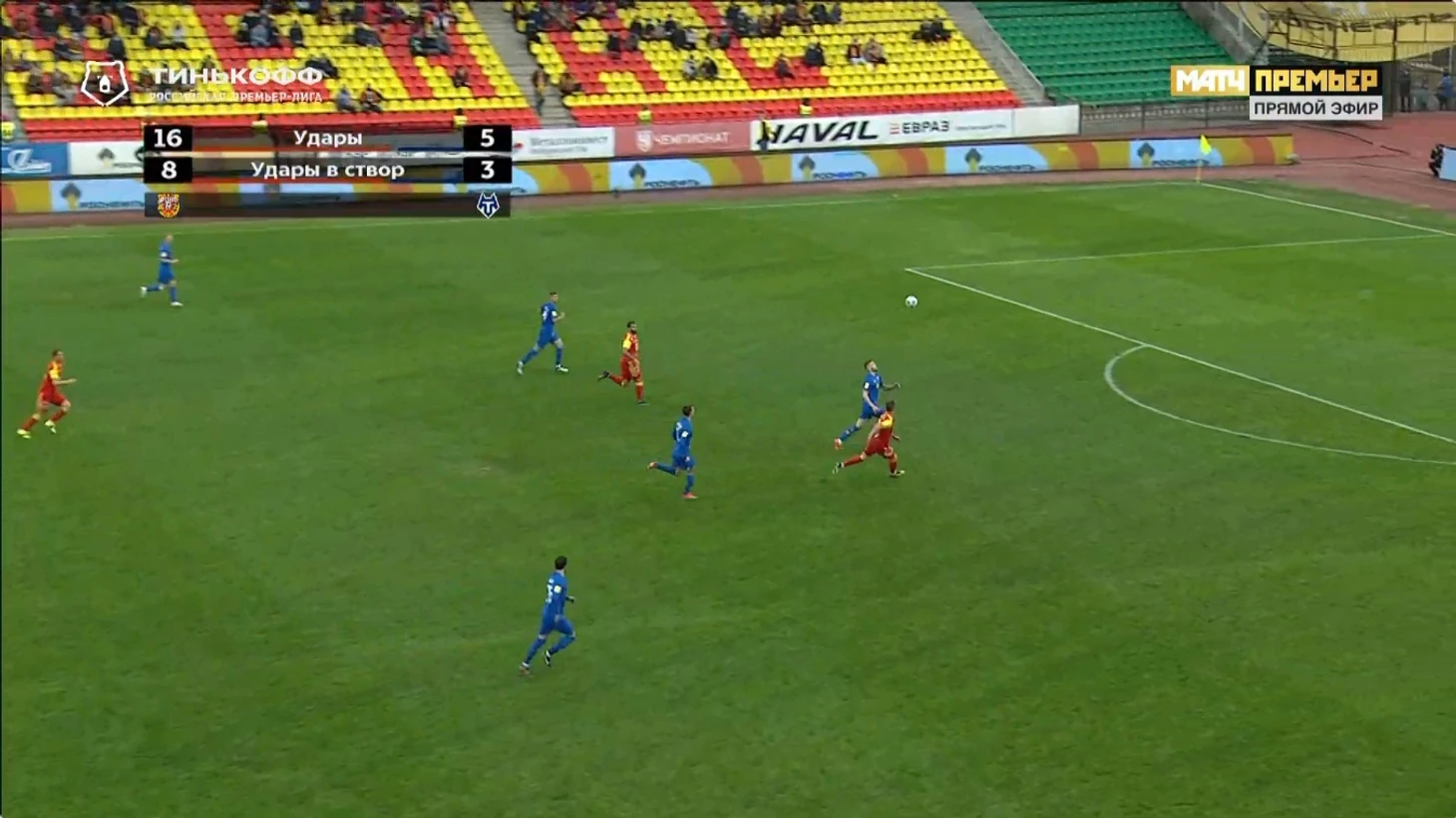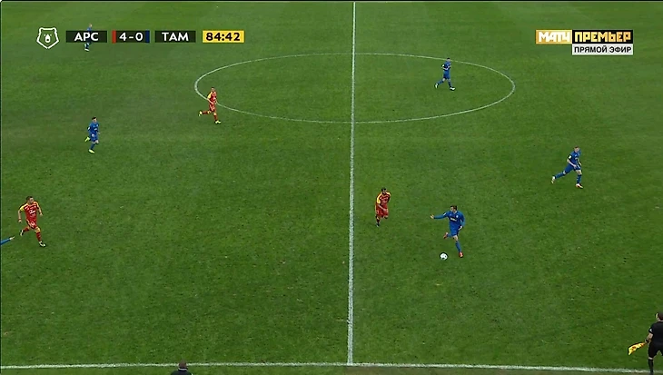 Почти минуту без действий Аджоев компенсировал рывком до центральной линии.