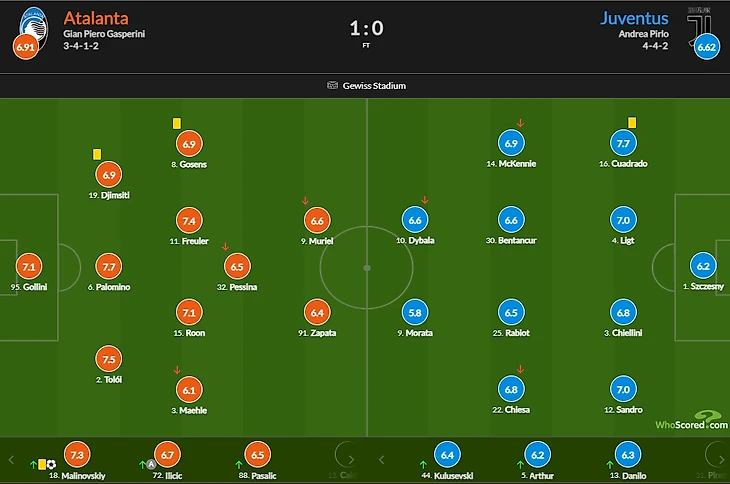 Куадрадо - лучший игрок «Юве» в матче с «Аталантой», Мората - худший