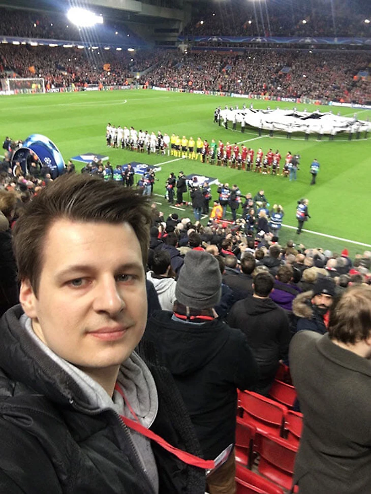 Но самая запоминающаяся – Лига чемпионов. В 2017-м «Спартак» (наконец-то!) взял чемпионство, хотя я в начале сезона о таком никто и подумать не мог. А это – гарантированная группа ЛЧ впервые за 7 лет. Если на рядовых матчах я бывал, то ЛЧ – это уже совсем другая лига. И когда «Спартаку» достался «Ливерпуль», которому я сильно симпатизирую, жена (тогда еще не жена, правда) сказала: надо брать билеты – а если не возьмешь, я тебе сама куплю.
