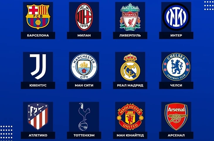 Мы имеем единую суперлигу, мечту всех фанатов игр FIFA и PES. Турнир, который делал каждый игрок в одной из этих игр. Состав участников данной лиги: Реал, Барселона, Атлетико, Милан, Ювентус, Интер, Ливерпуль, Манчестер Сити, Манчестер Юнайтед, Челси, Арсенал, Тоттенхэм. А самый главный на районе президент Реала - Флорентино Перес