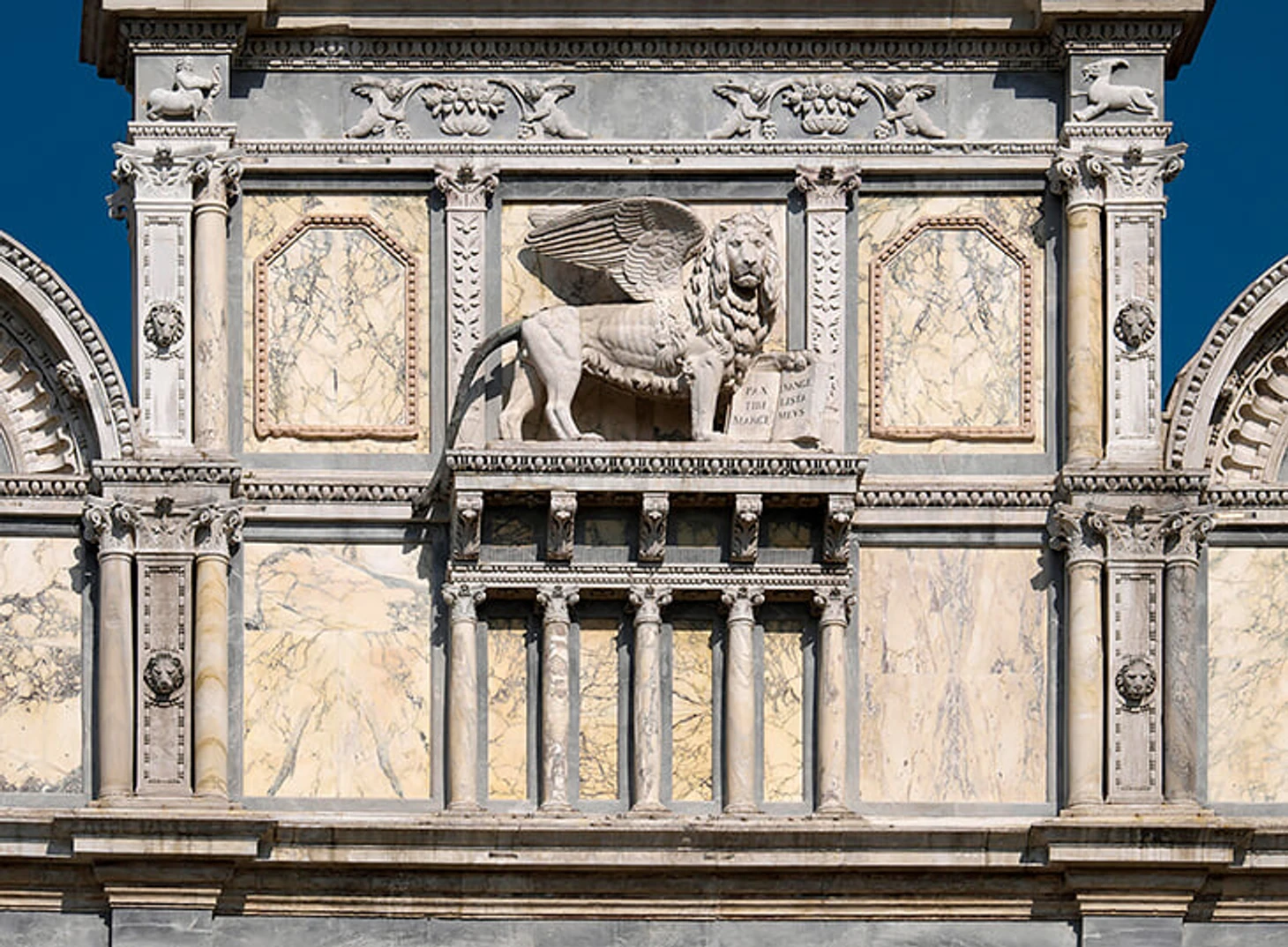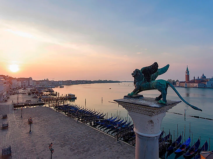 Крылатый лев – главный символ Венеции, его можно найти везде – от фасадов старинных зданий до площади Сан-Марко, над которой возвышается его скульптура.