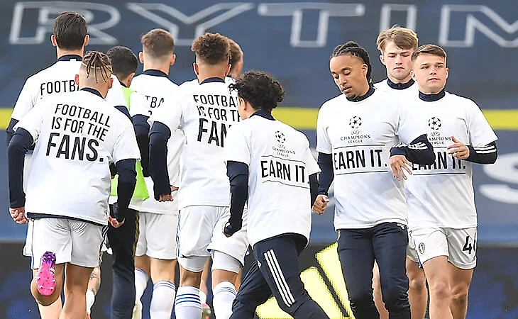 Футболисты «Лидса» не остались в стороне от главной темы дня. На предыгровую тренировку они вышли в футболках с логотипом Лиги чемпионов и подписью «Заслужите». На спине еще одна надпись – «Футбол для фанатов».