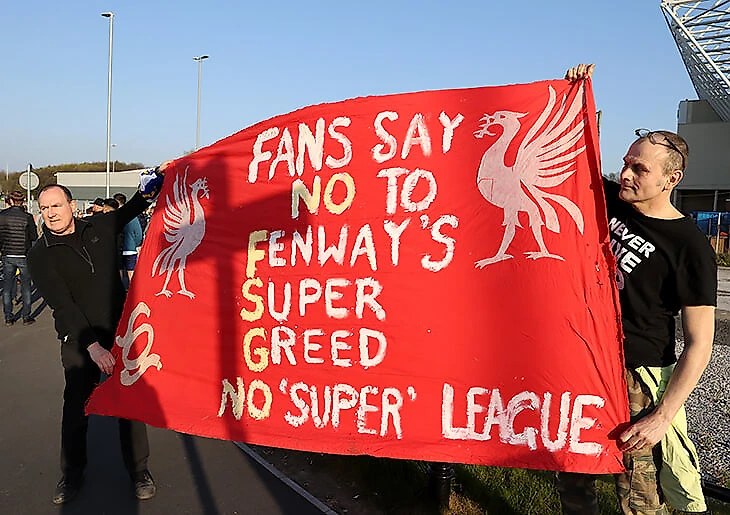 Болельщики использовали это, чтобы максимально высказать свое отношение к идее Суперлиги. Приехавшие на выезд фанаты освистали автобус с командой и вооружились баннерами про смерть футбола от алчных владельцев – такие же утром появились на ограде «Энфилда».