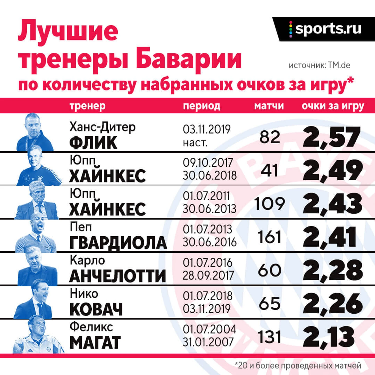 Перед «Баварией» теперь стоит сложная задача. Ей совсем скоро нужно будет найти очень смелого человека, который после ситуации с Фликом не только согласится сотрудничать с баварскими патронами, но и вдобавок будет показывать результаты как минимум на уровне самого успешного тренера в истории клуба (у Флика лучший процент побед – 83%).