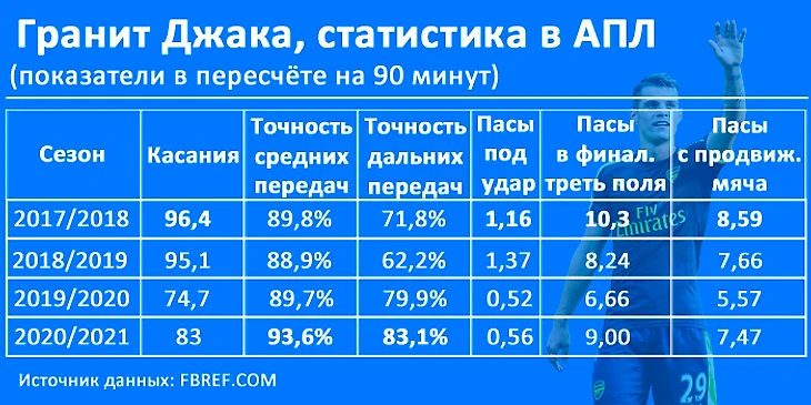 Сейчас показатели Джаки стали заметно улучшаться. Они не идеальны, но стремятся к цифрам, зафиксированным ещё во времена Венгера.
