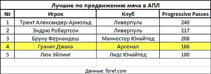Джака – футболист с достаточно ограниченным арсеналом технических средств. У него нет выносливости Эль-Ненни или скиллов «разрушителя» Парти, нет скорости Мартинелли или дриблинга Николя Пепе. Всё, что он умеет – играть в пас на хорошем уровне. У него достаточно узкая функция, и заключается она в продвижении мяча из опорной зоны. Глубинный плеймейкер (по итальянской терминологии «реджиста») для него слишком громкое слово, но функции те же. В последнем сезоне в Бундеслиге, швейцарец вместе с Хаби Алонсо был в топе по умению продвигать мяч, а ко дню рождения Гранита «Opta» выдала красноречивую статистику: за период карьеры в «Боруссии Мёнхенгладбах» (2012-2016 годы) он выдал больше всех точных передач в команде.