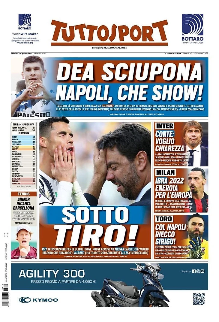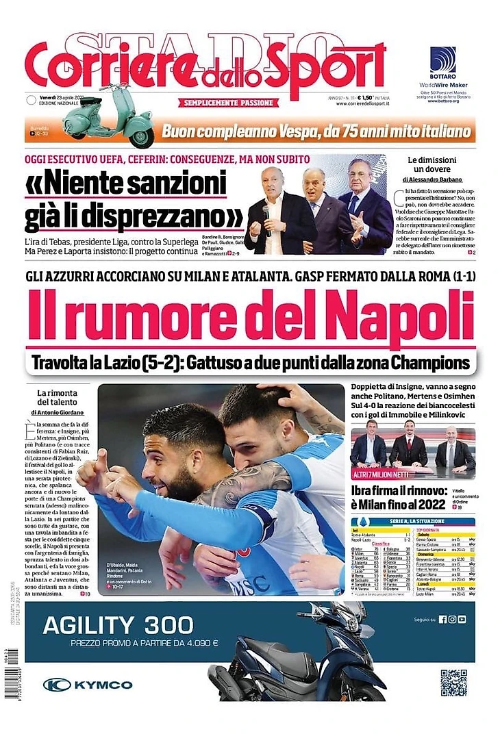 Грохот «Наполи». Заголовки Gazzetta, TuttoSport и Corriere за 23 апреля