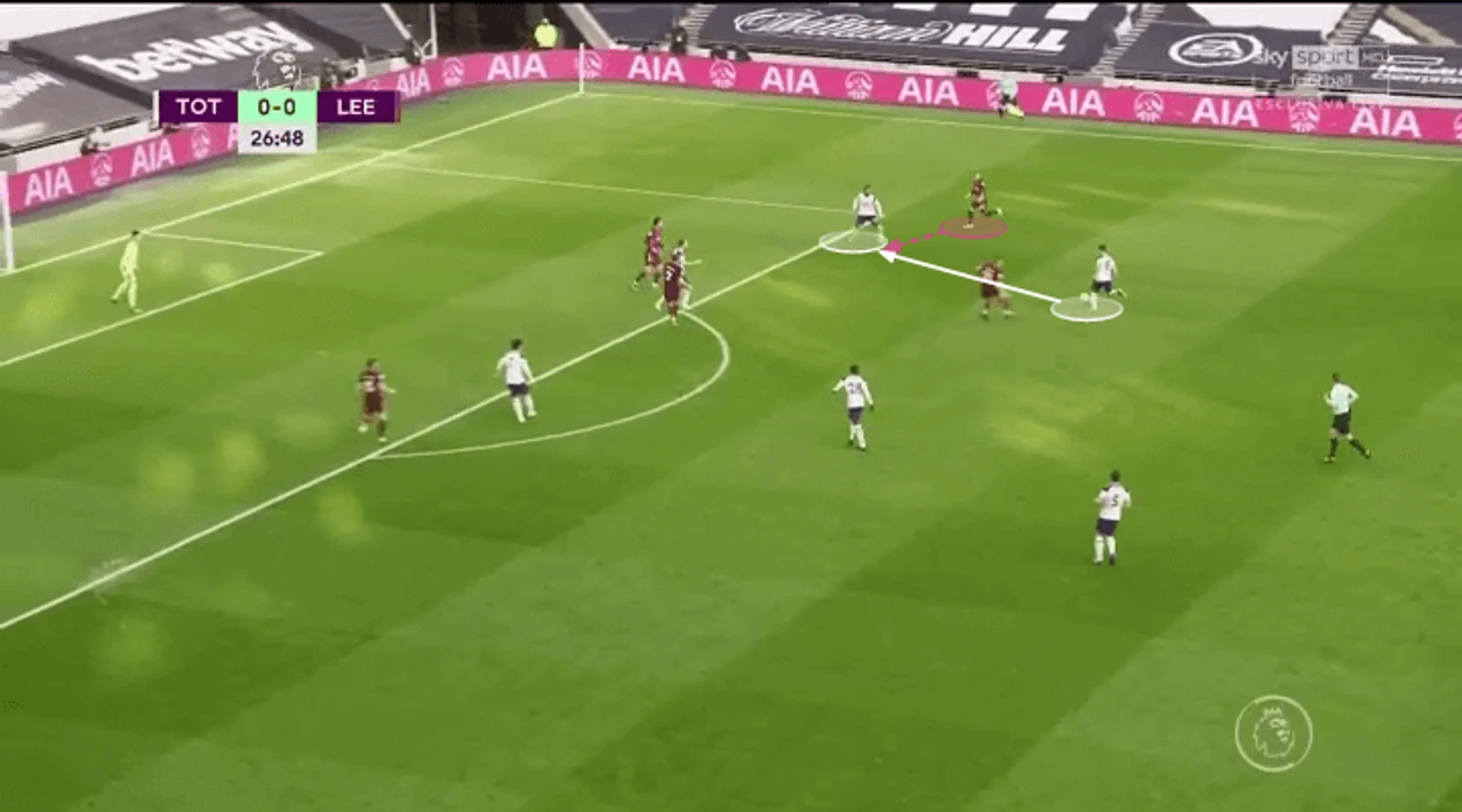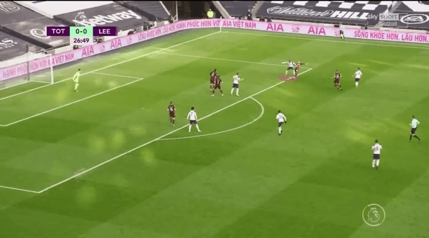 Возьмем, к примеру, Эзджана Алиоски из «Лидса», на котором был назначен пенальти в выездном матче против «Тоттенхэма». Харри Уинкс подает мяч в сторону Стевена Бергвейна, и Алиоски думает, что сможет опередить голландца и выиграть мяч. Бергвейн — игрок, с которым происходит контакт, падает на землю и зарабатывает пенальти. Моуринью не жаловался на этот «современный пенальти».