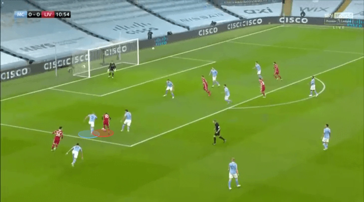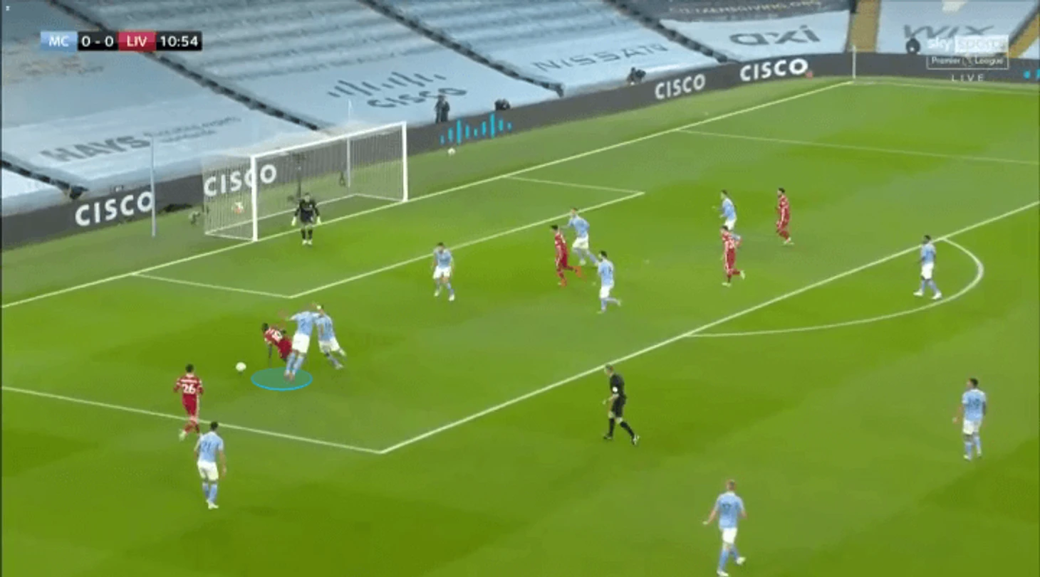 Наконец, посмотрите на Кайла Уокера, после действий которого был назначен пенальти в домашнем матче «Манчестер Сити» с «Ливерпулем». Здесь он даже не пытается отвоевать мяч у Садьо Мане — единственным его преступлением является то, что он бежит обратно к своим воротам. Он пытается избежать контакта, но оказывается слишком близко, Мане перерезает ему путь и зарабатывает пенальти.