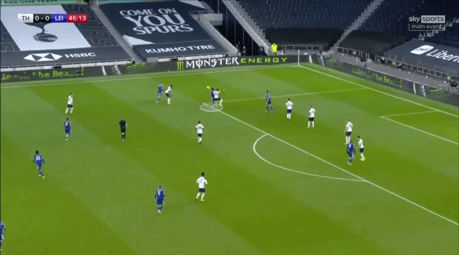 Раз уж мы рассматриваем игру «Тоттенхэма», то вот еще один уже на них заработанных пенальти в проигранном «Лестеру» матче со счетом 2:0. Во второй фазе стандартного положения на дальней стороне поля возникает воздушная дуэль, и мяч падает в угол штрафной. Серж Орье пытается добраться до мяча первым, но Уэсли Фофана ставит свое тело на его пути, Орье влетает в него, и в конце концов назначается пенальти. Примечательно, что он был назначен только лишь с помощью ВАР.