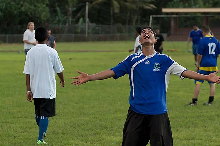 Это был первый перелет и главное событие в жизни сборной Понпеи. Первый матч они играли против команды из второго дивизиона Гуама. Самый важный матч в истории Понпеи начался перед 50 зрителями. «Я пытался сказать им, чтобы они поверили в себя. Другая часть меня думала о том, что мы легко можем проиграть 0:30», – говорит Пол.