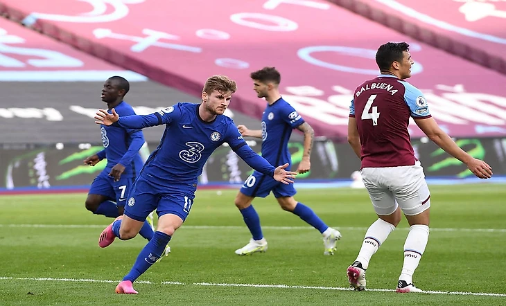 Первый тайм. Игра началась без раскачки. Первые десять минут Челси нагнетая атаку чаще оказывался перед штрафной соперника нежели Вест Хэм. Каждый подход «синих» к воротам Фабьянски в первый отрезок заканчивался ударами как в створ, так и в сторону ворот. К семнадцатой минуте из трех ударов – два в створ. К середине тайма Челси полностью забирает инициативу в свои руки и практически не расстается с мячом. Тем не менее при этом парадоксально сошли на нет удары в сторону ворот. Почуяв это, подопечные Мойеса приложили больше усилий и решили показать свои претензии на 3 очка в поединке на домашнем стадионе. Натиск «молотобойцев» отразился в нескольких угловых у ворот Эдуара Менди. К тридцать пятой минуте встречи разница по угловым была четыре против одного в пользу Вест Хэма. Но Челси в текущем состоянии не сломить никакими натисками, и в ответ «синие» провели быструю атаку, в которой Тимо Вернер замкнул передачу с фланга Чилуэлла. Браво Тимо! Немец забил первый гол с середины февраля. Тогда он отличился в игре с Ньюкаслом. На перерыв команды ушли с минимальным преимуществом гостей и казалось во втором тайме должно быть полегче.